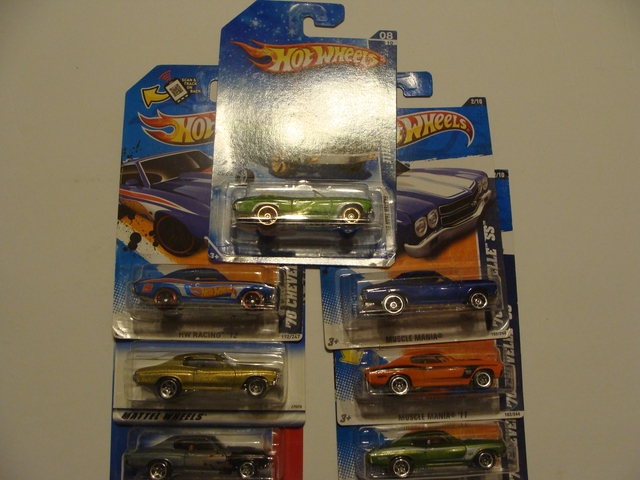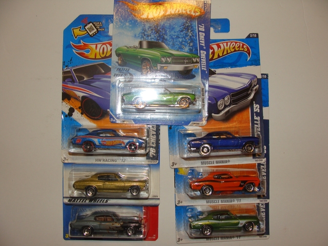 Selling 7 Hot Wheels 1970 Chevy Chevelle cars, 6 are the Chevelle SS and 1 is the Chevelle convertible.