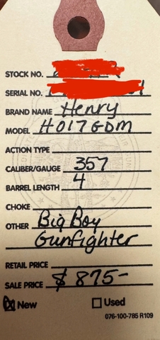 Henry Big Boy Gunfighter 357 revolver brand new in the box. 4" barrel, blued. 6 shot cylinder