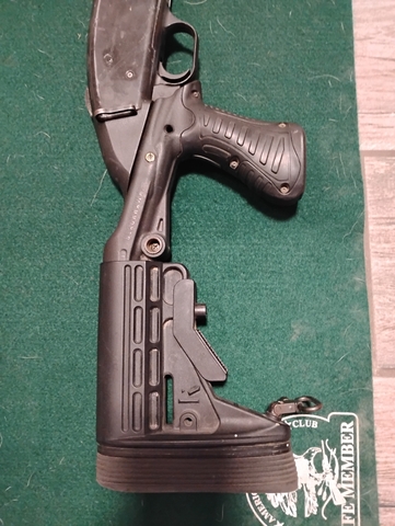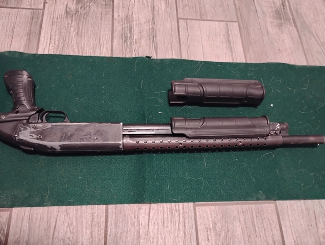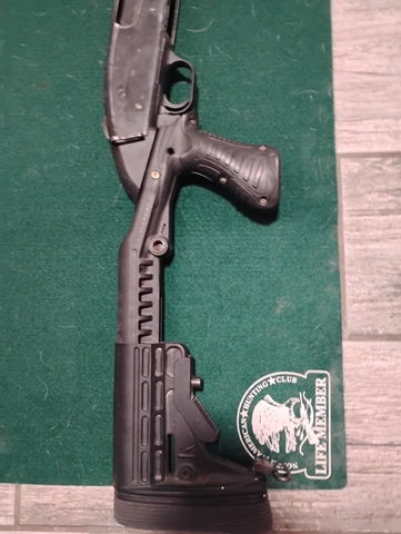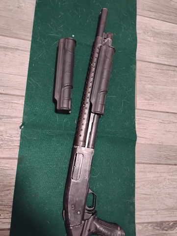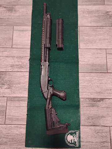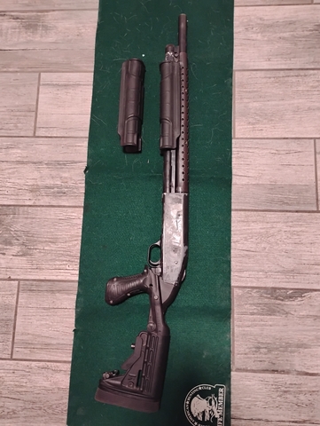 Mossberg 500A 18" barrel 12 gauge pump shotgun with AR style adjustable Blackhawk furniture. The stock is spring loaded absorbs most of the recoil when you shoot. Comes with an extra forearm stock and it has the heat shield on the barrel. Somebody did primer and paint the receiver, I was going to redo it but I haven't made the time. $200 call or text 785-259-8140 or message me on here