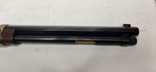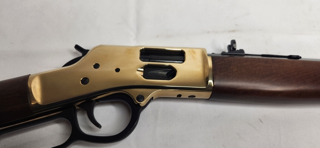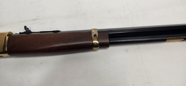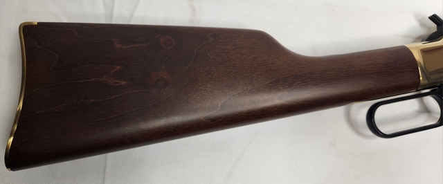 This gorgeous rifle is in like new condition, and only been fired a few times, if that many. The beautiful American Walnut and Brass is an iconic look and feel you'll never forget. Stop by Flatlander Pawn and Gun to check it out in person.