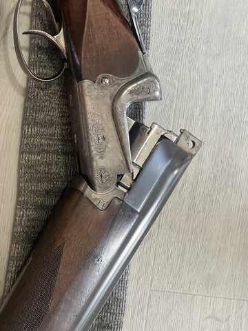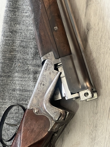 A beautiful 1955 Merkel Genruder Suhl engraved 12 GA over O/U