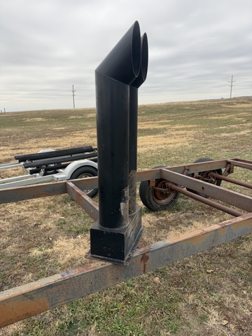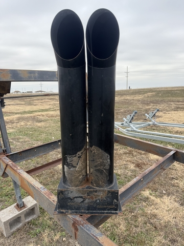 6 inch dual stacks. The mounting base is 16" wide, 9" deep. The overall height from where it mounts to the tips of the stacks is 41 3/4". Yes they have rust, the powder coat is peeling. They were $800 new. Could look like new again with $100 powder coat job. I just don't have a use for them anymore.