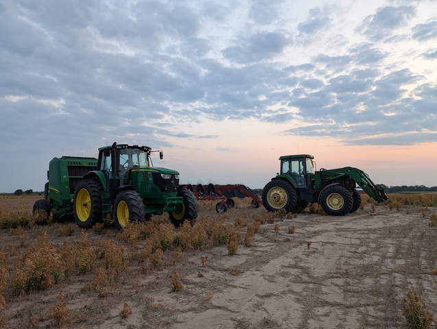 We run 2 560m JD balers a 7410 John Deere and a 6195m and a rhino 16 wheel rake on a 7810