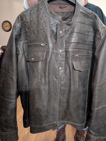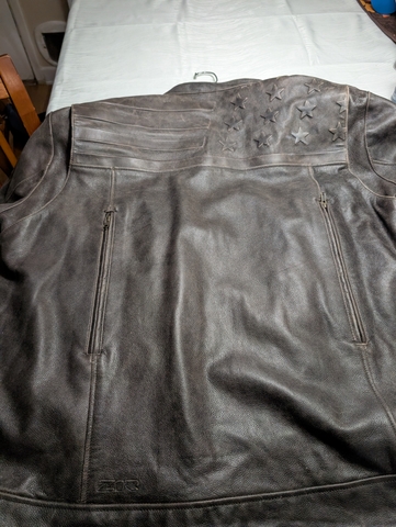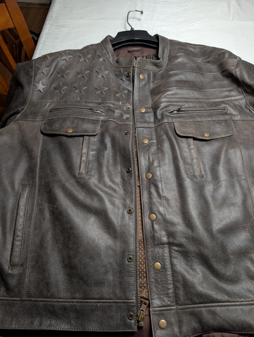 Leather motorcycle jacket.This jacket is new 4XL paid over $300 My loss your gain I will take$125 cash pick up Salina Kansas no shipping don't need any help to selling it. Has a concealed carry pocket