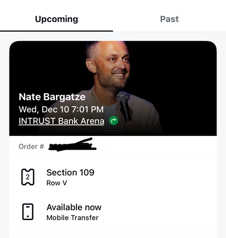Two tickets for comedian Nate Bargatze at InTrust Arena in Wichita, KS.