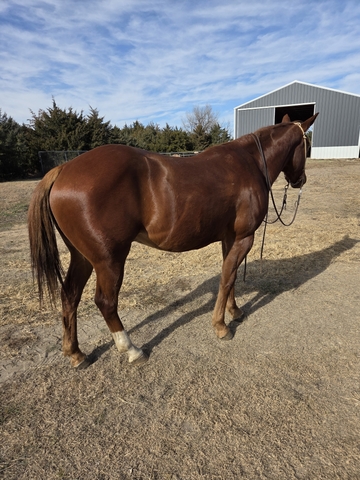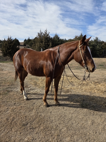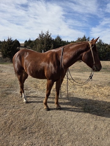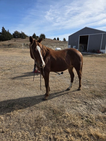 "Squirrel" is a 3 year old grade gelding. Stands 14.3 with a stout build and excellent confirmation and gentle disposition. Willing and a quick learner with 60+ rides. Been around the ranch, trails and rode in town. This young gelding is full of potential to finish in any direction. Contact Clemens Yoder with Yoder Horse Training 308-537-6640.