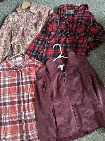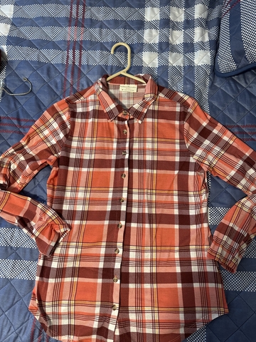Peach and burgundy plaid shirt -Size Medium-$4