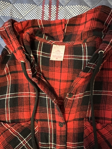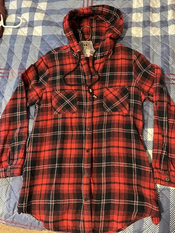 Red and black plaid shirt with hood- Size Large (may fit more like Medium)-$4