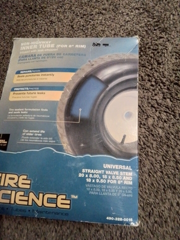 Brand new tire science tire tube 20x8.00,18x8.50,18x9.50 for 8 rim infused with leak stopper asking $8.