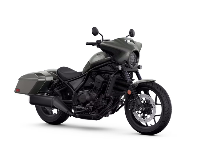 The Rebel 1100T takes the Rebel 1100's heart and adds the soul of a bagger with hard saddlebags and a sleek front fairing. For 2025, updates include an improved rider position, more comfortable seat, 5-inch TFT display, and Honda RoadSync. Available with optional DCT, it’s the perfect mix of power, comfort, and style.