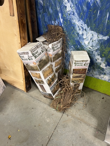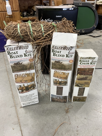 Avery killer weed boat blind kits, get everything you see for one price, blind material works great and covers well, I have used it on boats and layout blinds, two full boat blind kits and one single color box, but it all for $75.00 cash only.