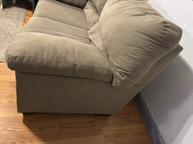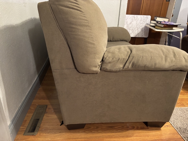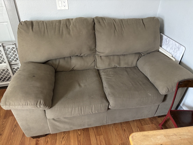 This is a decent loveseat with no rocking or recliner functions. It has a couple stains on it (see pictures) but quite small and probably easy to get off but have not tried! We are selling it to make room for a piano! It's roughly 66 inches long. Message here or call or txt anytime between 8am -9pm . Seven8five-259-sixthree71