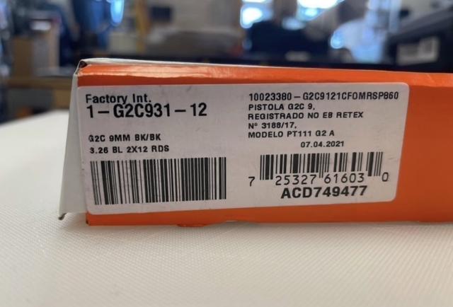 Taurus, PT111 G2C, Semi-automatic Pistol, Double Action Only, Compact , 9MM, 3.2" Barrel, Polymer Frame, Blued Finish, Polymer Grip, Adjustable Sights, 12Rd, 2 Magazines