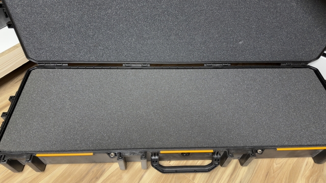 Black Pelican V800 Vault Double Rifle Case. This was slightly used and is in excellent condition. All foam inside has been replaced with new phone. Original paperwork is included, travel wheels on one end with 2 folding handles. Total of six locking mechanisms, two on either end. + four in the front have the ability to lock case with TSA lock