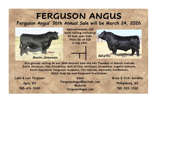 2026 ANGUS BULL SALE. Text or call 785-476-5345 for more info or to get a catalog sent to you. Join us at the Ranch or View and Bid on DVAUCTION. Come by any time to look thru bulls. 27 Two year olds( many used as yearlings on our registered cows) and 64 yearlings born in January and February.