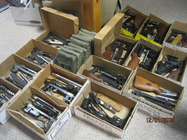 Latest batch of kits came in. Unknown pricing and availability going forward. If you ever wanted one, better do it now as the European sources are drying up. These are the last of the unissued Polish PD kits. Folders and full wood stock shown. Add a new 9mm barrel for $100.00. If you want 7.62 x 25 barrel, let me know. New 3 mags with pouch add $60.00.........starting to get hard to find new sources...........thx! All NFA rules apply. Shipping available; send zip. Cash, Paypal, .M.O., Personel ck OK.......