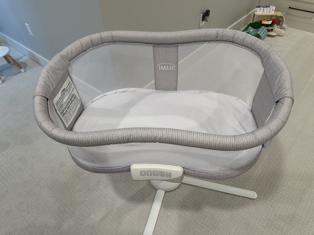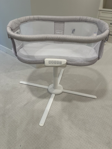 Selling this Light Gray Herringbone Halo BassiNest Luxe Swivel Sleeper Bassinet. It has the lowering front wall, breathable mesh, 360 degree swivel, 2 illumination options, 2 types of soothing options, and a vibration option. It has adjustable height. It comes with the bassinet mattress and washable mattress sheet. This item has been very minimally used, and stored completely covered in our basement. It is basically brand new, with no wear and tear. It comes from a smoke free home. Brand new this item was purchased for $419 plus tax. Asking price is $125. Cash and Venmo accepted for payment. Cross posted, no holds.