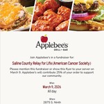 Mention 'Relay For Life' or Show the Flyer (paper or digital) to your server BEFORE YOU PAY and Carlos O'Kelly's will donate 25% to the Saline Co RFL!!