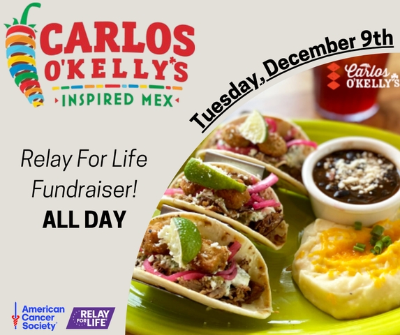 Join us at Carlos on Tuesday, December 9th for a Spicy Fundraiser to benefit Saline County Relay For Life!