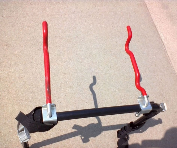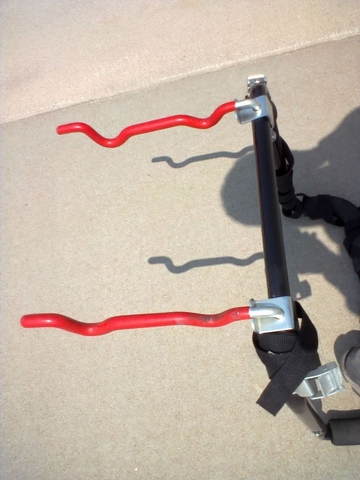 Bike Carrier Rack -$30.00 Trunk mount or tailgate mount universal bike carrier. Holds two bikes. 20” wide. The posts to hold the two bikes are 12” Listings on Amazon show that New bike carrier racks similar to this model sell for $55 to $100.