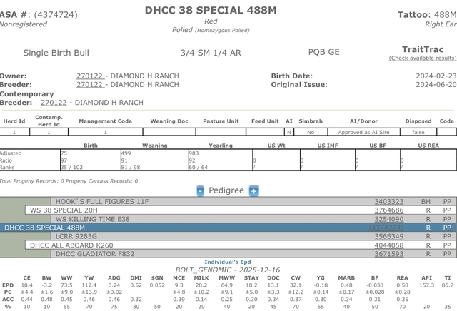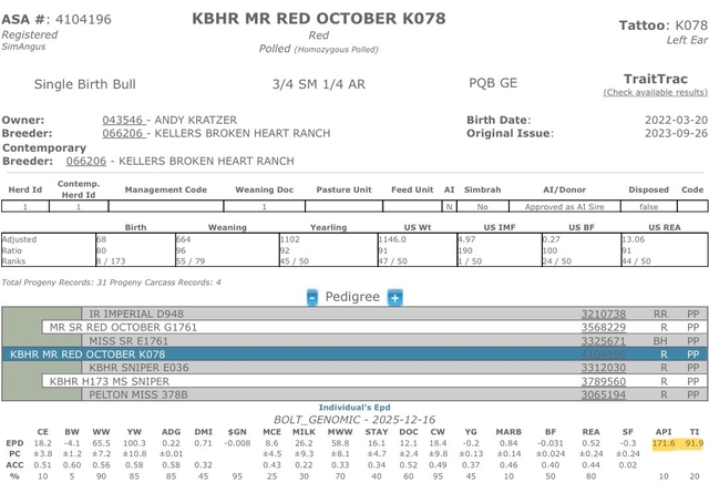 We also have a red registered bull for sale which we purchased from Keller Broken Heart Ranch in 2023.