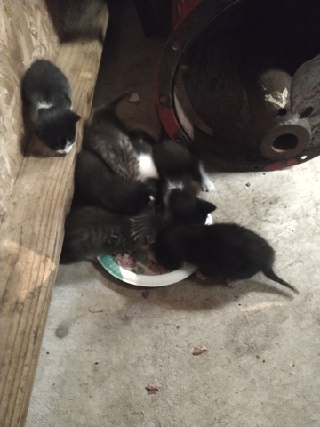 I have 7 heathly Kittens ready for new homes these are free to anyone who may want some barn cats or as a house pet they are eating solid cat food now and learning little box training mostly mixed black and white with a couple striped kitties ph 785 479 6047 or message me on nex-tech thanks for looking