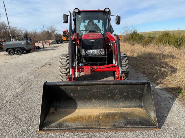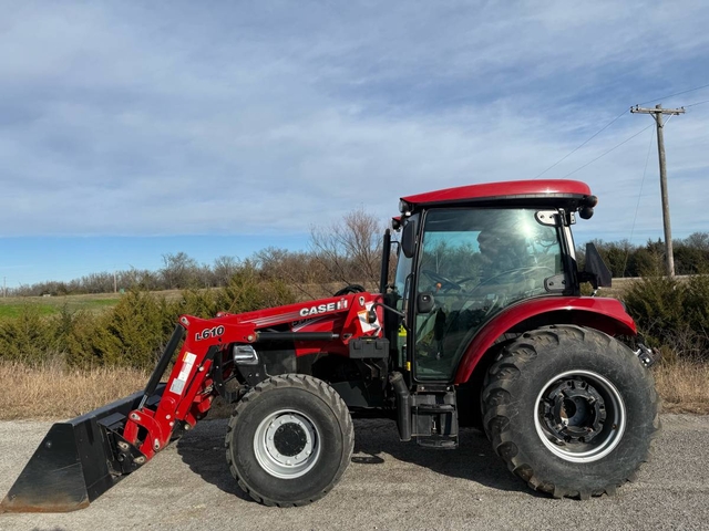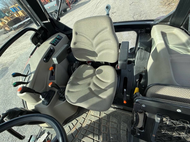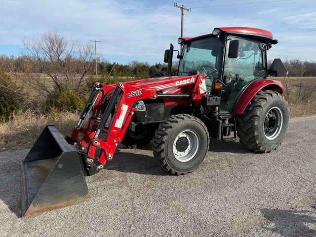 55HP, 12-speed transmission with left-hand reverser, 3pt, 540 PTO and dual hydraulic remotes. This 4-wheel drive tractor has heat & air in the cab, a buddy seat and a sunroof. It has rear wheel weights, a L610 loader with skid steer style quick attach bucket & joystick and auxiliary hydraulics plumbed to the front of the loader. This is a very nice, clean tractor with only 377 hours! This is a one-owner tractor in nearly new condition and ready to go right to work. Shipping is available anywhere in the United States. Please call us at 620-736-2038 for more information or to come look at it. Also, please visit our website at www.riggstractorcompany.com to view our current inventory.