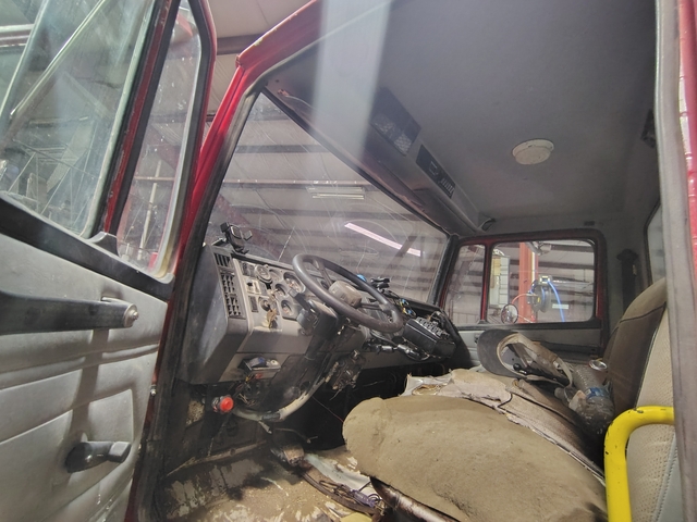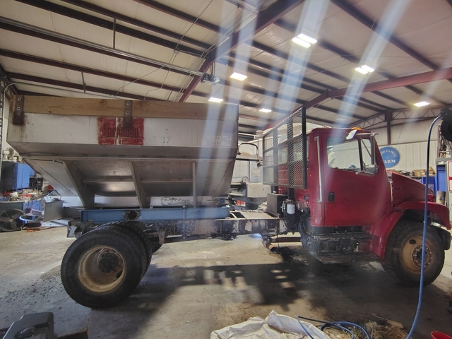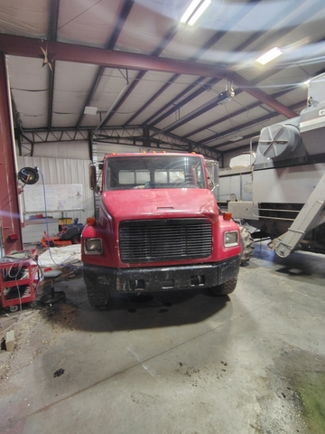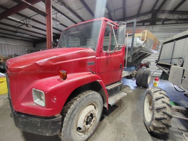94 Freightliner FL70. Has a Cummins 5.9 l, Allison MD3560p 6 speed transmission. It only has 7,250 mi but has a lot of hours. We've owned this for 2 years, before putting the fertilizer box on this was our hey hauling truck, before that it was a construction site truck.