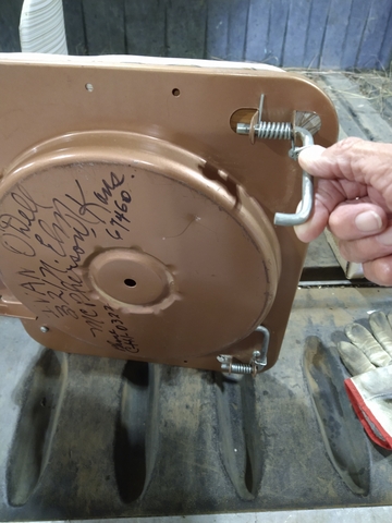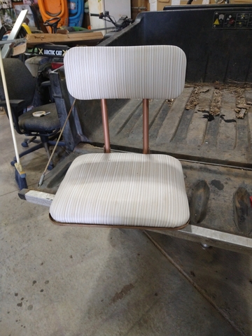 Stadium seat. Metal frame. Spring loaded hooks for bleacher attachment.
