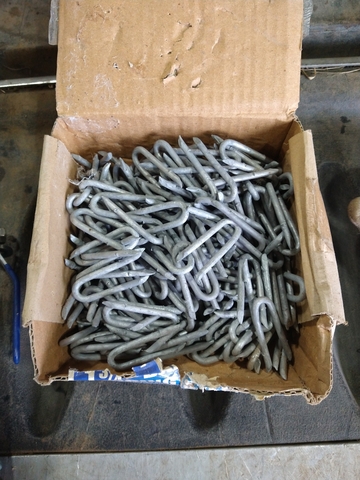 1 3/4" barbed staples. Galvanized. Partial 5 lb box.