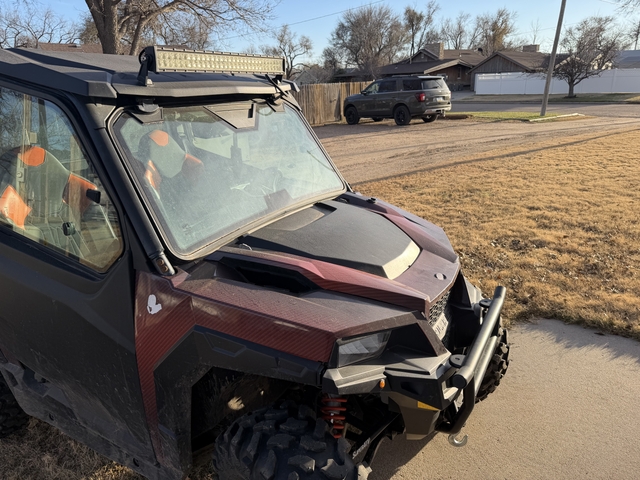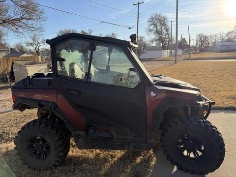 Completely enclosed with flip out windshield, 2 sets of doors, wrapped, tilt bed cover, fresh oil change, extra belts and oil, winch, factory radio, aftermarket adjustable shocks approximately 1500 miles. 2 new tires, other 2 are 80%. This is street legal with turn signals, horn, hazard lights. Runs great. FAST. Great farm or trail Polaris. 12,500 or best offer, no trades. Six two zero 640 22 zero zero
