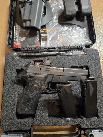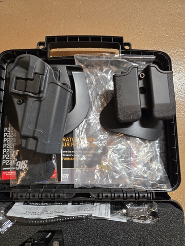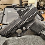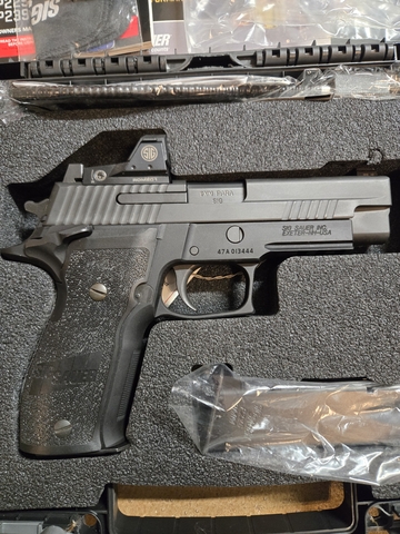 Manufactured december 2016. Model before the legion series. Purchased new june of 17. Factory recessed red dot Romeo one. May have 100 to 200 hundred rounds thru it total. These have been talked about highly by SIG enthusiasts. All manuals and original case. Paddle holster is Blackhawk and mag holster is SIG