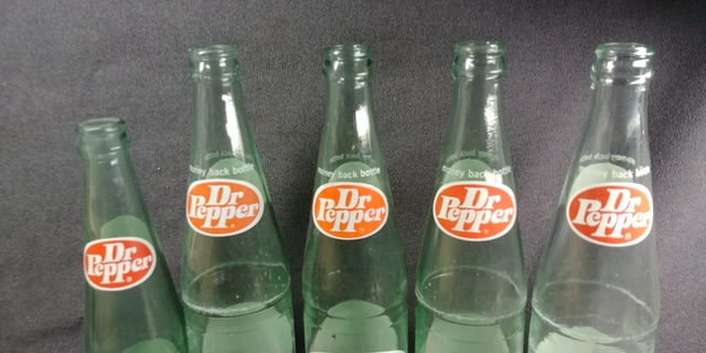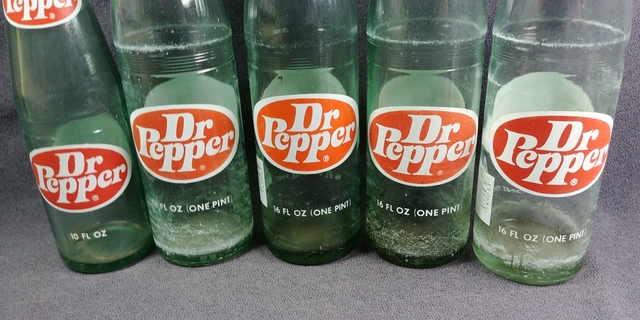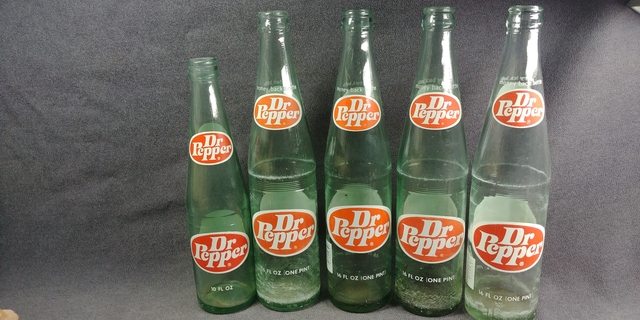 Two sizes of Dr Pepper Bottles