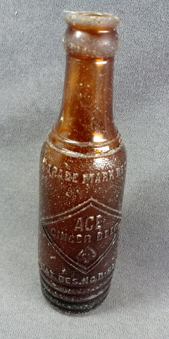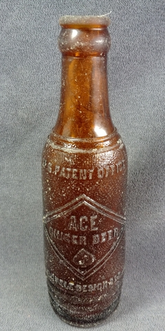 1920s Ace Ginger Beer Brown Amber Antique Glass Bottle