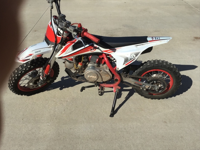 For sale, 110cc XPro X15 pit/dirt bike with 10"rear/12"front tires. Less then 3 years old. No known mechanical issue, starts 2nd or 3rd kick. Semi-auto transmission , kick start, hydraulic disk front brake. Son just doesn't ride it anymore.