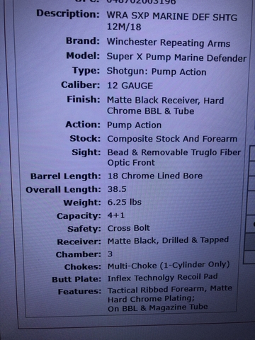 Nib Winchester Super X Pump Marine Defender 12ga Shotgun. Bead and removable truglo fiber optic front sight, 18" chrome lined barrel, 38.5" overall length. More information in pics. $380 cash only, not interested in any trades. Must be legally able to purchase and possess a firearm. Will do a bill of sale with this shotgun. Also have a GForce ar12 shotgun listed on nextech.