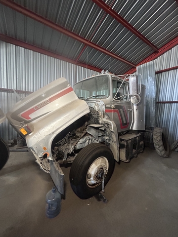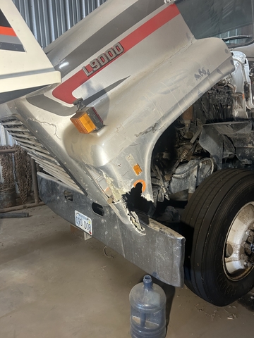 Selling a 1988 ford L9000 truck. Has 443000 miles, no rust anywhere and good paint on body and frame. Always shedded. Cab is very straight. It was in a fender bender on the LH side and broke the hood mount, hood panel, bumper. We stopped driving it and bought a newer truck. Needs that work done, and an alignment. Would like to sell whole for parts or repair. Would make a nice farm truck again! It drove to that spot where it is.