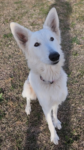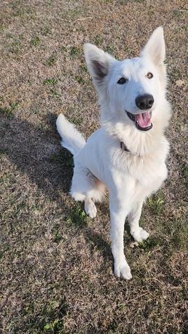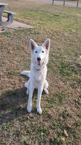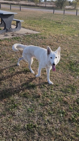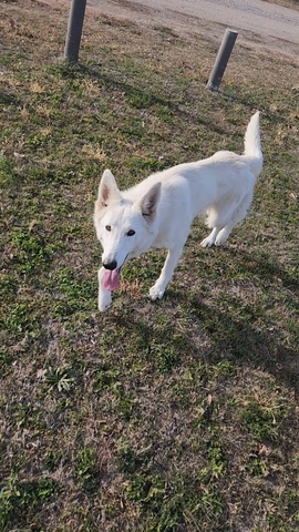White switch shepherd beautiful dog. Very kind loves children but israel bouncy.. He loves to fast but get so excited over.She will try to get the stick when you bend over to pick it up to throw it.So she needs a little training there and stay. She\nHas good recall and stays in the yard without trying to get out. She still loves chew toys hard ones. I took her in as a rescue.. But I will be moving , and can only take one dog. This dog is about four weeks pregnant. She needs a home , a shelter will put her down. She is pregnant with a malamute poodle cross. If you can please help me to save her.I would be ever so grateful. Small fifty dollar be home fee to Discourage bait people.. I have to leave in a better week.And she needs her home by then.. I do not know\n That I can save her at this point.. Please think about it. In her country of switzerland is a purebred and registerable , and this country she is not. The swiss white shepherd was bred only from white german shepherds , bred smaller and more petite.. She gets along the other dogs. And People of all ages and race.