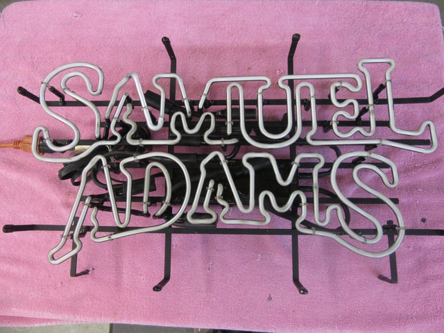 Listed is a nice, clean Samuel Adams Neon Sign. Measures 26" x 15" x 6". Colors are blue Has On-Off switch. Manufactured in 1998. Pictures don't do justice for neon signs. Text me at 785-656-4120 for more information. Check out my other signs listed. More you buy, the better savings.