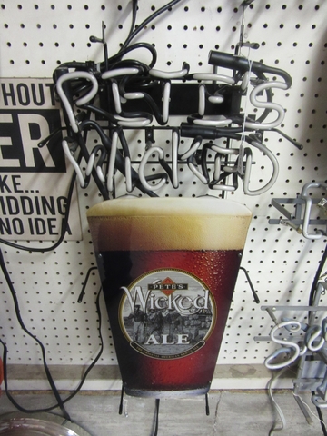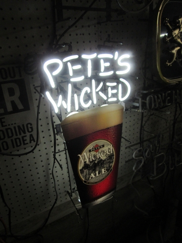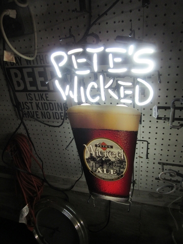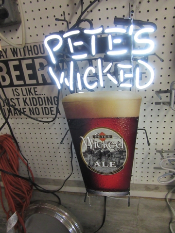Listed is a nice, clean Pete's Wicked Ale Neon Sign. Measures 26" x 13" x 6". Colors are white and multi-colored. Has On-Off switch. Pictures don't do justice for neon signs. Text me at 785-656-4120 for more information. Check out my other signs listed. More you buy, the better savings.