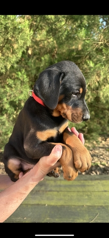 AKC Dobermans come with their first shots, wormed, tails and dewclaws docked, full health guarantee, full registration . Both parents are on site, willing to meet halfway for puppy pick up. Call or text for additional information and pictures 225-290-9465, full price is $1,500.