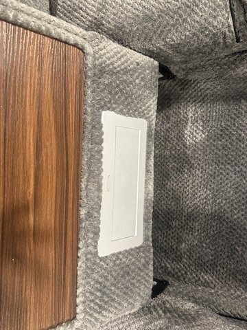Hidden pull out compartment below middle seat.