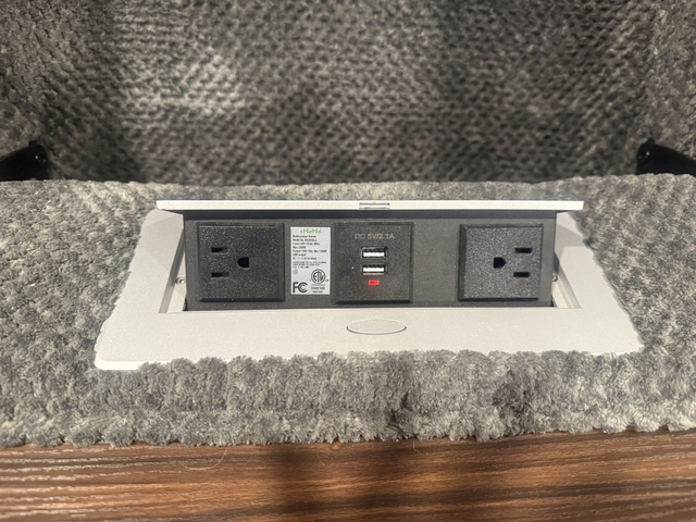 Slow release pop up USB (2) chargers and electrical plug in (2).