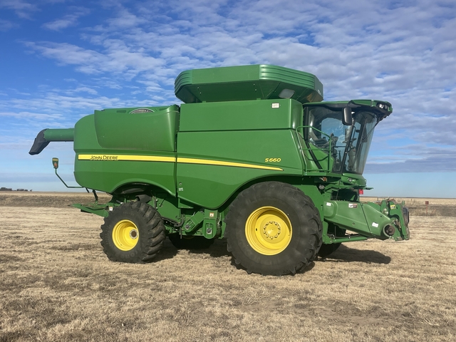 2013 John Deere S660, Combine is In great shape , no Def to deal with , pre def machine . Large bin extensions , has mainly been used in only wheat and Milo sorghum .Lankota hitch on rear axle to pull header when transporting . Pretty low hours for a 2013 , 2,427 engine hours and 1,602 separator hours . Asking $108,000 .