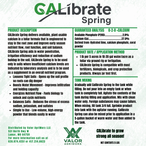 CALibrate Spring delivers available, plant-usable calcium in a foliar formula that is engineered to stay in the root zone and improve early-season nutrient flow, root function, and soil balance.