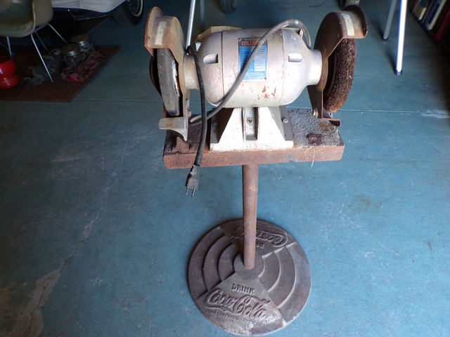 Cool old Coca Cola cast base. Someone thought it would work great for mounting a grinder which looks like it worked fine. Will remove grinder if you dont want it. No cracks or breaks seen. Call 6206176644 - emails & texts are usually ignored as a scam.