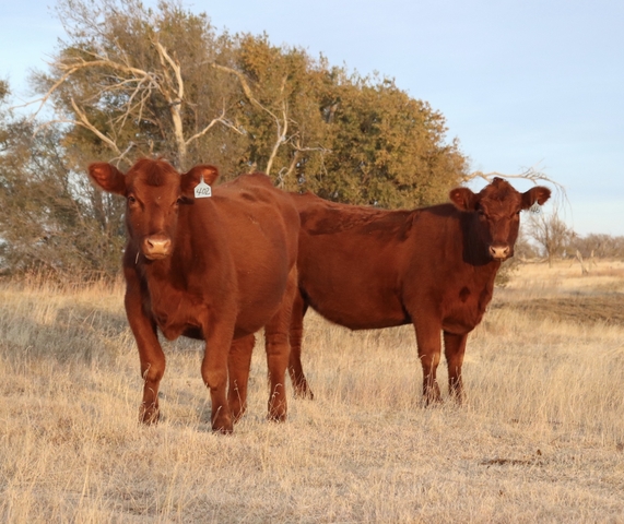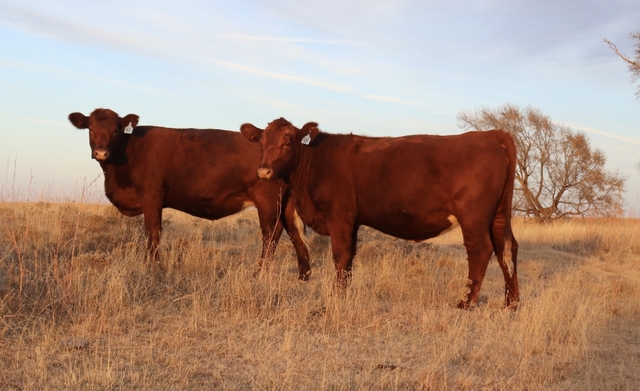 12 red angus cross heifers (1100 - 1200 lbs) AIed to Gardiner Home Free, cleaned up with Stevenson Turning Point son, proven black angus calving ease bulls. Should calve Feb 15 - April 15. Heifers are cake broke and very gentle. For more info, text or call 620-582-2396