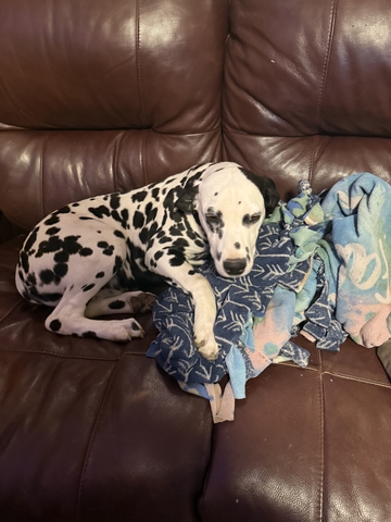 I bought this Dalmatian but unfortunately things have changed and I'm not longer able to keep him. His CKC papers are ready for him to be registered. If you have any questions please text 785-two zero eight-5016.