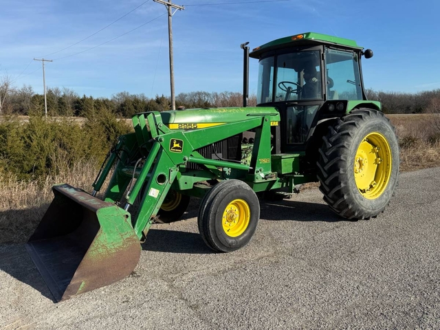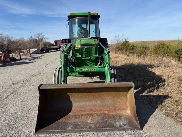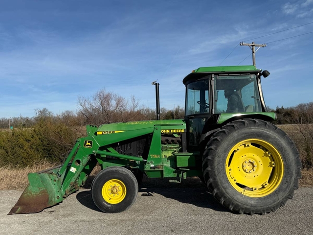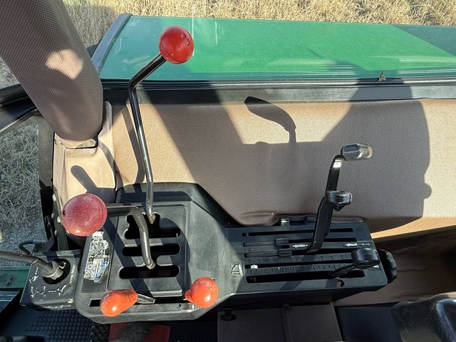 97HP, 8-speed Hi-Low range transmission, 3pt, dual PTO and dual hydraulic remotes. The cab has heat and air. It has a JD720 loader with quick-attach bucket and joystick. This is a very clean tractor with 4965 hours. Shipping is available anywhere in the United States. Please call us at 620-736-2038 for more information or to come look at it. Also, please visit our website at www.riggstractorcompany.com to view our current inventory.
