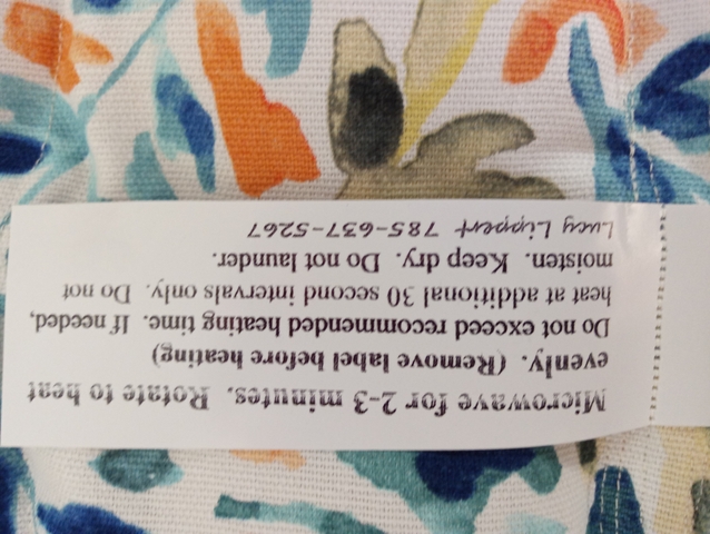 HEATING PADS-rice quilted in Duc Cloth (light canvas). Large -18"x23" ($35). Neck -8"x23" ($25). Heat in microwave (see instruction tag). Durable with longlasting heat. Safer than electric heating pads. Great for sore muscles or warming a winter chill!!!!